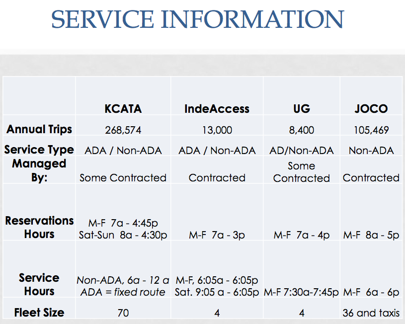 Our four transit agencies provide special transportation for people with disabilities as well as seniors, even if they don’t have disabilities. Johnson County’s service is not an ADA complementary service.