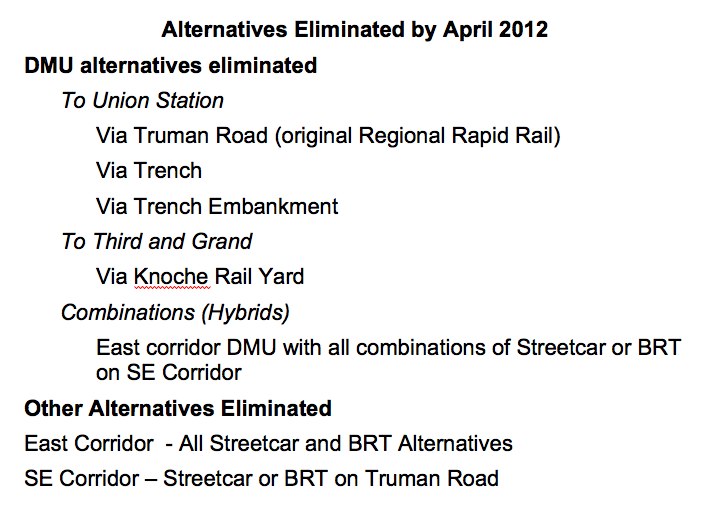 Full Regional Rail using a DMU on Truman Road or the Trench Embankment is eliminated.